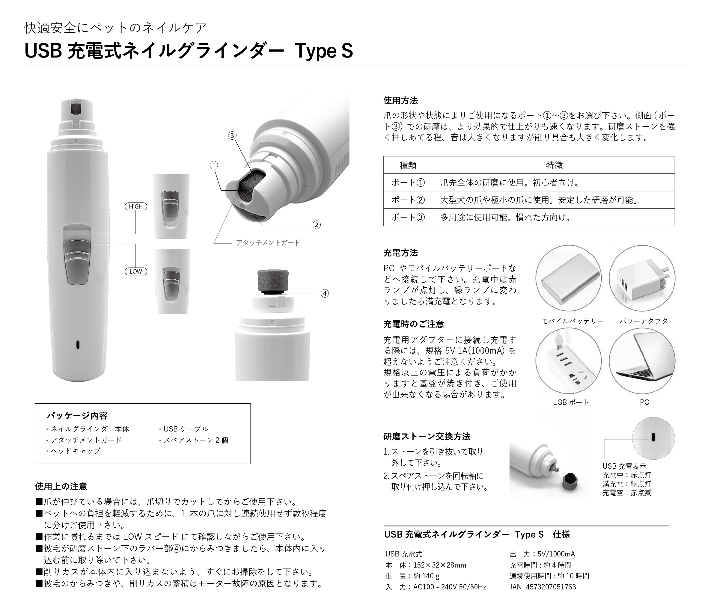 サイズ | 【パッケージ内容】 ネイルグラインダー本体 アタッチメントガード ヘッドカバー スペア研磨ストーン2個 USBケーブル 【商品仕様】 USB充電式 リチウム電池 サイズ:152x32x28mm 重 量:約140g 入 力:AC100-240V 50/60Hz 出 力:5V/1000mA 充電時間 : 約4時間 連続使用時間 : 約10時間 |