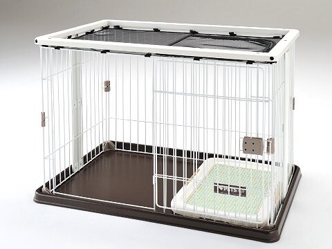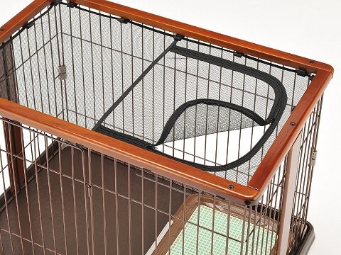 天井面と両サイドに木のフレームを施した、お部屋に調和しやすいデザインの犬用サークルです