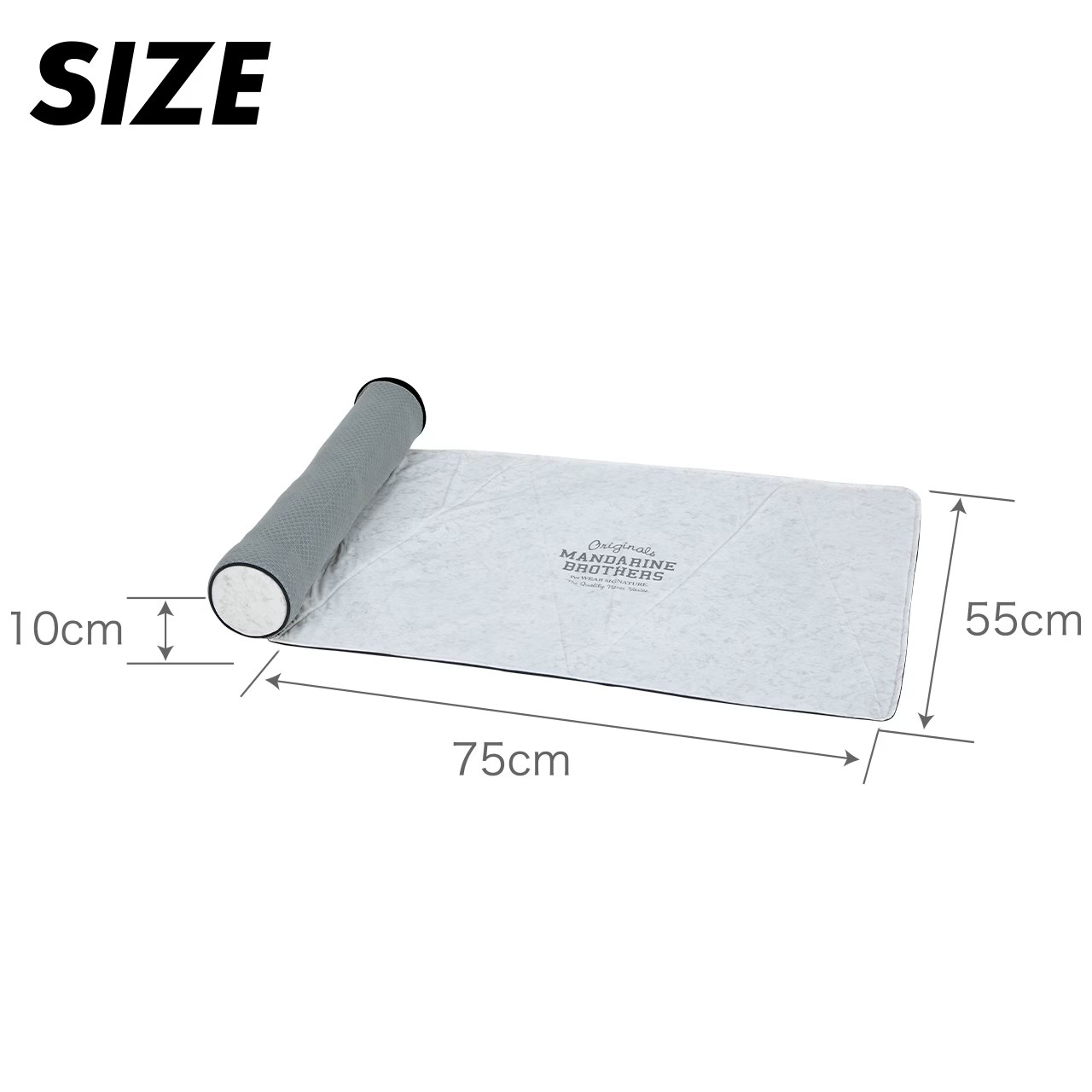 冷凍ペットボトル2本で長時間涼しさ持続!表面に接触冷感生地を使用でさらに快適。コンパクトに巻いて収納可能です。
